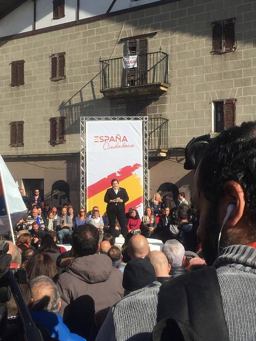 Ciudadanos alderdiko Albert Rivera, Vox-eko Santiago Abascal eta Nafarroako PPko buru Ana Beltran bildu zituen España Ciudadana plataformak azaroaren 4an egindako ekitaldian. Haiekin batera Espainiako txoko ugaritatik etorritako 300 bat pertsona izan ziren. Ekitaldian Beatriz Sanchez Seco ETAko biktimak, Fernando Savaterrek eta Riverak hartu zuten hitza. Eta aurrenekoak hartu zuenetik azken hizlarira arte ezkila errepika izan zen. Foruzaingoak ekitaldia bitartean ezkilak jotzeagatik lau gazte identifikatu zituen. Mozal Legean oinarrituz 3.300 euroko zigorra jarri diete. Haietako hiruk 800 euroko isuna pagatu beharko dute eta laugarrenak, berriz, 900 eurokoa “plazan zeudenak haiek defendatzeko hitzez adoretzeagatik”.