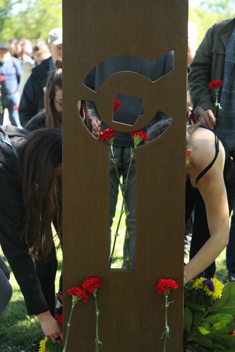 Ana Ollo bigarren lehendakariorde eta Memoria eta Bizikidetzako, Kanpo Ekintzako eta Euskarako kontseilariak azaldu zuenez, "haiei egindako omenaldia eta mezua modu sinbolikoan indartzeko" beharra zegoen, "horretarako mustu dugu monumentu txiki hau bere izenen plakaren ondoan". Han bizi izan zutena gogoan, Ollok adierazi zuen: "ez hemen, ez inon. Sekula gehiago ez inorendako. Izan ere, zoritxarrez, errefuxiatuendako edo presoendako esparruetako irudiak egunerokoak dira. Gerra eta indarkeria ez daude hain urrun. Europak une delikatuak bizi ditu. Baina itxaropenaren sugarra bizirik mantendu behar da" esan zuen.