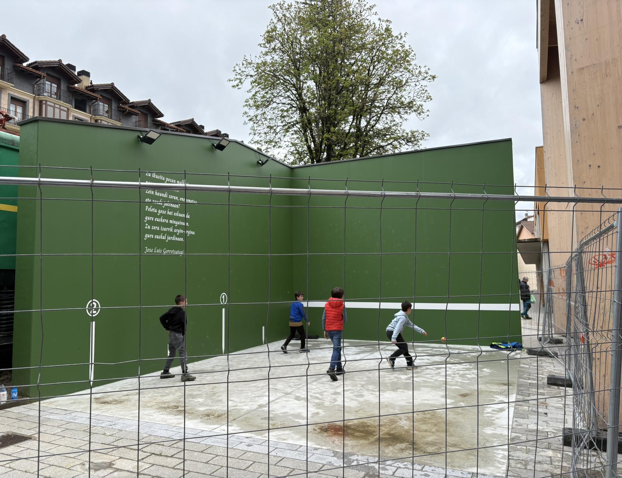Altsasuko Udalak haurrendako estalpearen ondoan egin duen frontoia dagoeneko erabilgarri dago. Frontisaren atzeko aldean Iker Uribe margolariak murala egin du. Hara eraman du Foru plazan jokatutako pilota partida bateko argazki bat. 1931. urteko argazki horretan hiru pilotari eta jendetza haiei begira ikus daitezke. Horrekin batera, ezker paretan Joxe Luis Gorrotxategi bertsolariaren bertso bat ere irakur daiteke: