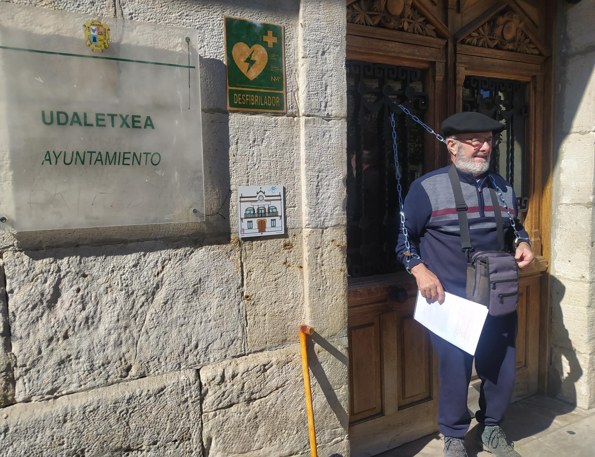 Fernando Iriarte Larreak bere burua udaletxeko atean kateatu du 12:53an, eta hala egon da ordu erdiz. Protesta ekimen horrekin bere etxearen inguruko egoera bideratzea eta konpontzea nahi du. Ameztia auzoko 12. zenbakian bizi da, beheko solairuan. Etxearen ondoan bajera bat dago. Iriartek azaldu duenez, haren jabe berriak etxerako sarbidea moztu dio. Gaineratu duenez, “bidea eta bajera herri lurrak dira eta pasarako eskubidea izan beharko nuke”. Etxea erostean pasabidea herri lurra zela ziurtatu zioten udalean. Altsasuko Udalari partzelen mugak eta jabetzak zehazteko eskatuz idatzia aurkeztu zion garilaren 28an. Gaur erantzun bila kateatu egin da.
