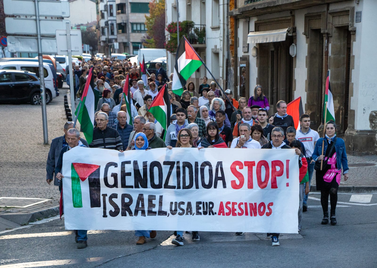 Sakana Harrera Haranak deituta, Genozidioa stop! Amerikako Estatu Batuak, Europa, hiltzaileak leloa zuen manifestazioa egin zen Altsasun larunbatean. Haren akaberan Altsasun bizi den emakumezko palestinar batek hartu zuen hitza. Adierazi zuenez, "gure ondoan egon ez bazinate, gerra ez zen bukatuko. Zuen ahotsek, manifestazioak, grebek eta gizatasunak mundua Palestinara eta Gazara begiratzea behartu zuten. Gerraren akabera ez da garaipen militarra izan, baizik eta zuek bezalako herri libreek gidatutako garaipena".