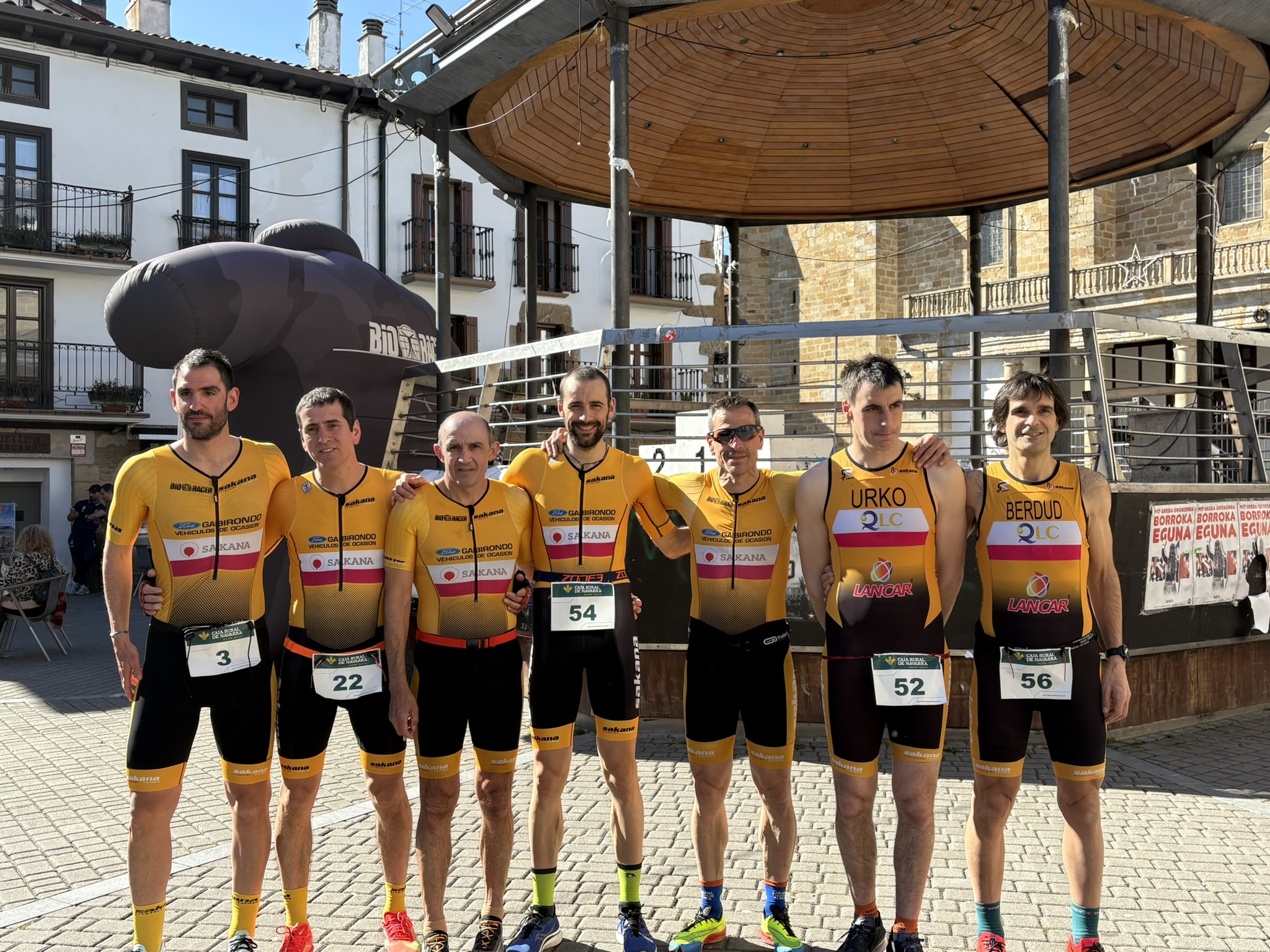 Gizonezkoetan Josu Etxeberriak, Eneko Izagirrek eta Pello Osorok lehia oso estua izan zuten. Osorok egin zuen denborarik onena bizikleta tartean, gainontzeko biak harrapatuz, baina korrikako azken eremuan Josu Etxeberriak erasoa jo, eta bakarrik iritsi zen helmugara (58:50), Izagirreren (59:07) eta Osororen (59:43) aurretik. "Korrika da nire indargunea eta azken tartean dena eman dut" zioen, pozik, Altsasun lehen aldiz aritu zen 27 urteko gasteiztarrak. Sergio Garcia de Eulate altsasuarra (Sakana Triatloi Taldea) lehen sakandarra izan zen (1:02:23), lehen beteranoa. Antolatzaile den aldetik zegoen kontentuago. "Giro ona egon da, eguraldia ederra, eta ez da aparteko arazorik egon. Goizeko NKJ-ak eta arratsaldeko proba nagusia ongi joan dira, eta oso pozik gaude".