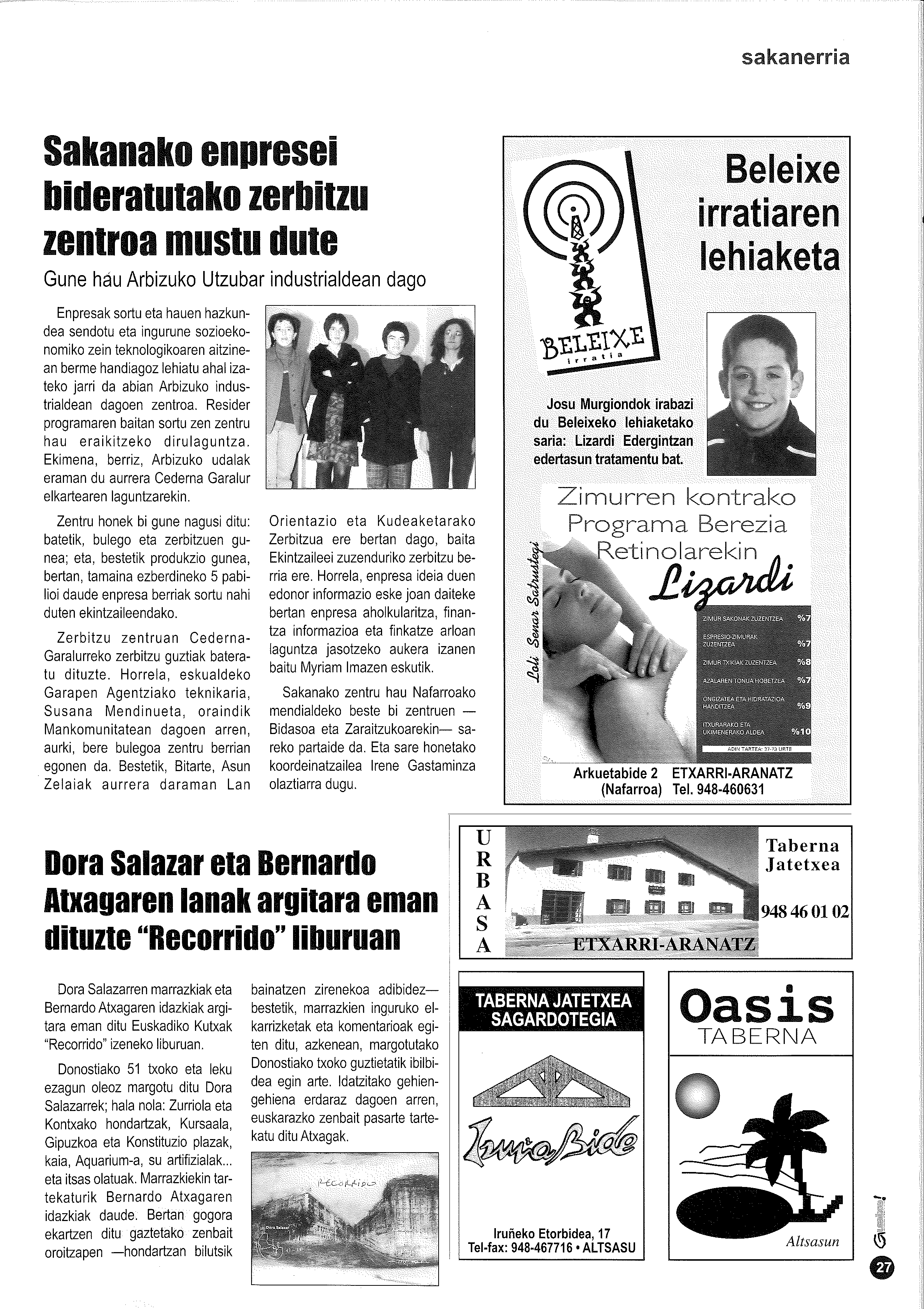 Arbizuko Udalak, Cederna Garalurren laguntzarekin, enpresak sortu eta haiek sendotzeko zerbitzu zentroa eraiki zuen Utzubar industrialdean. Batetik bulego eta zerbitzuen tokia zuen eta bestetik bost pabilioi zeuden: 126,9 m2-ko bat, 120ko bi eta 63ko bi. Han lan egiten zuten Garalurreko teknikari Susana Mendinuetak, lan orientazioan Asun Zelaiak eta enpresa ideien inguruko informazioa Myriam Imazek ematen zuen.