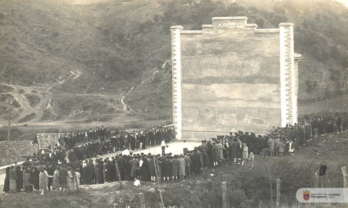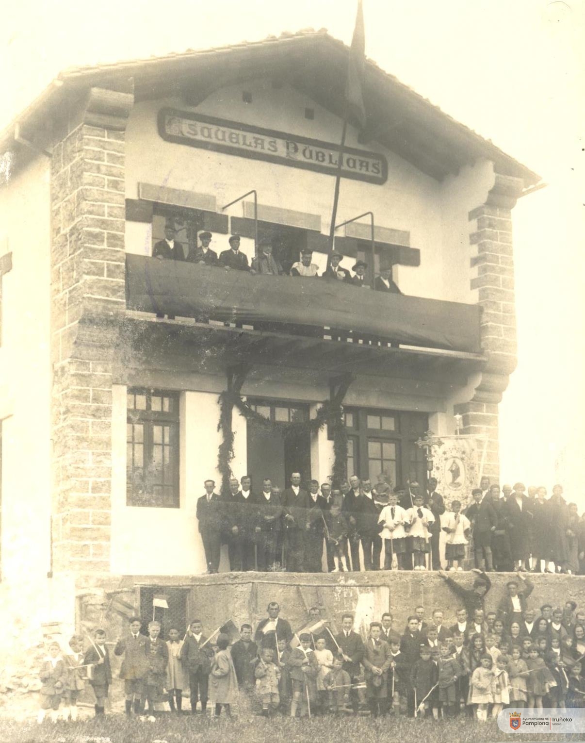 Felipe Echalecu apaizak meza eman zuen 10:00etan. Ondoren elizatik eskolara eta frontoira prozesioan joan ziren. Segizioaren buruan haurrak zeuden, bi ilaratan eta banderatxoak eskuetan zituztela joan ziren, Irene Larragueta de Garcia irakaslearekin batera. Haiekin batera, segizioan agintariak, apaiza herriko gurutzearekin eta jende ugari joan zen. Agintarien artean zeuden Jose Saralegui alkatea, Hezkuntzako inspektore buru Eladio Garcia, probintziako arkitekto Manuel Ruiz de la Torre eta eskola distritua osatzen zuten herrietako alkateak ere izan ziren: Izurdiagako Benito Echeverria eta Urritzolako Florentino Astiz. Jose Roldan Bidaburu argazkilaria ere Iruñetik Errotzera joan zen.