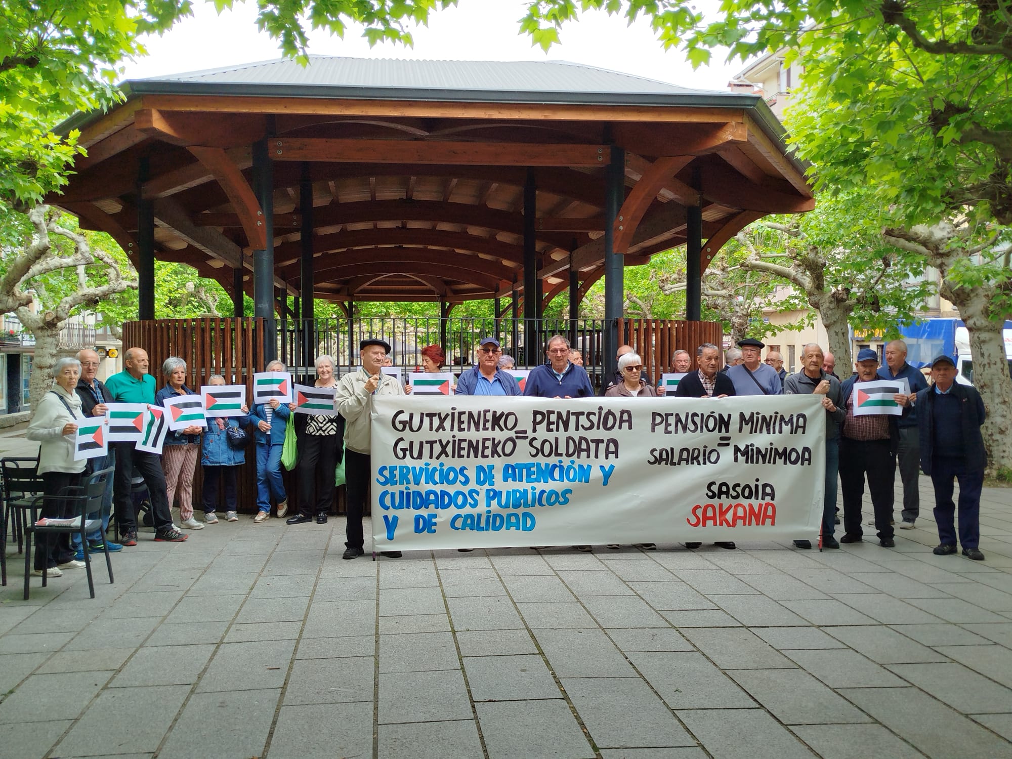Sakanako Sasoiak-ek deituta, pentsio duinen aldeko elkarretaratzea egin zen Etxarri Aranazko plazan astelehenean, azoka egunean. Sasoiak-eko kideek gutxieneko pentsioa gutxieneko soldatarekin parekatzea aldarrikatu zuen. Aldi berean, kalitatezko arreta eta zaintza zerbitzu publikoak aldarrikatu zituzten. Bilkuran parte hartu zutenetako askok Palestiaren banderak zituzten eskutan, herrialde harri elkartasuna adierazteko.