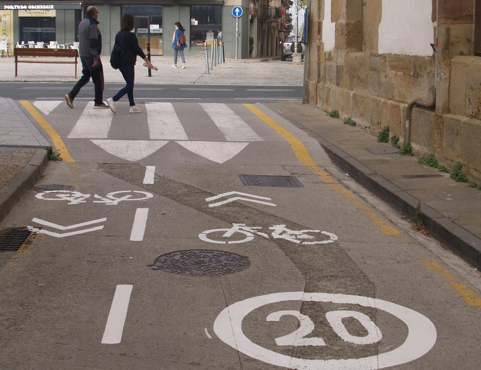 Aranaz eta Mundiño kaletik plazaraino iritsiko dira erromesak eta txirrindulariak. Bi kale horietan erabilera partekatu behar dute oinezkoek, bizikletek eta autoek, baina bizikletek lehentasuna izanen dute. Kaleetan seinaleztapen horizontala eta bertikala jarriko dira, erabilera duala adieraziz, eta abiadura orduko 20 km-ra mugatuko da. Ibilgailuen trafikoaren egungo norabidea mantenduko da. Ezarri den bidegorrian ez aparkatzeko ohitura hartu beharko dute orain auto gidari batzuk.