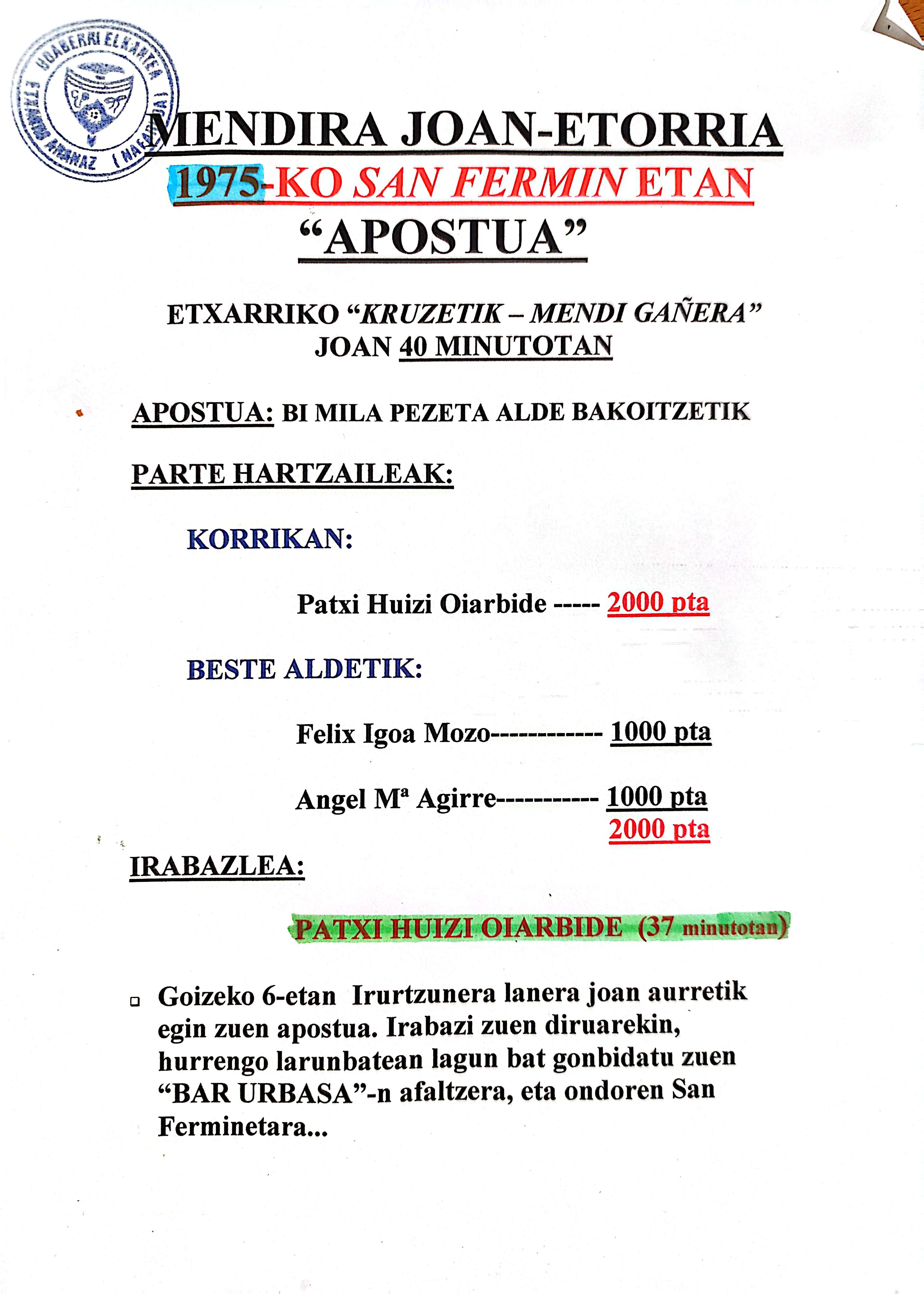Ulaiarrek atentzio handiz bete eta gorde izan ditu hasieratik edizioetako erregistroak. Eskuz idatzitako eta margotutako papertxoetan, 1976ko edizioa ditu gordeta. Lehenengoa ere, noski. Apustuaren ziurtagiria. Eta 36 urtez, erregistro guztiak eraman ditu berak. Gero, Internet eta teknologien erabilerarekin, kontrola galdu du eta iada ez du lista pasatzen. Hala ere, Txiflirekin batera, gogora ekarri ditu izen batzuk: “Ander Unzurrunzaga etxarriarrak askotan irabazi izan du proba”. Altsasuar bat ere ezin izan dute aipatu gabe utzi: Antonio Salgado, oso ohikoa izan baita urte askoz lasterketa honetan. Tomas Mauleonek, adibidez, hamazazpi aldiz parte hartu du Ulaiarren erregistroak esan bezala.