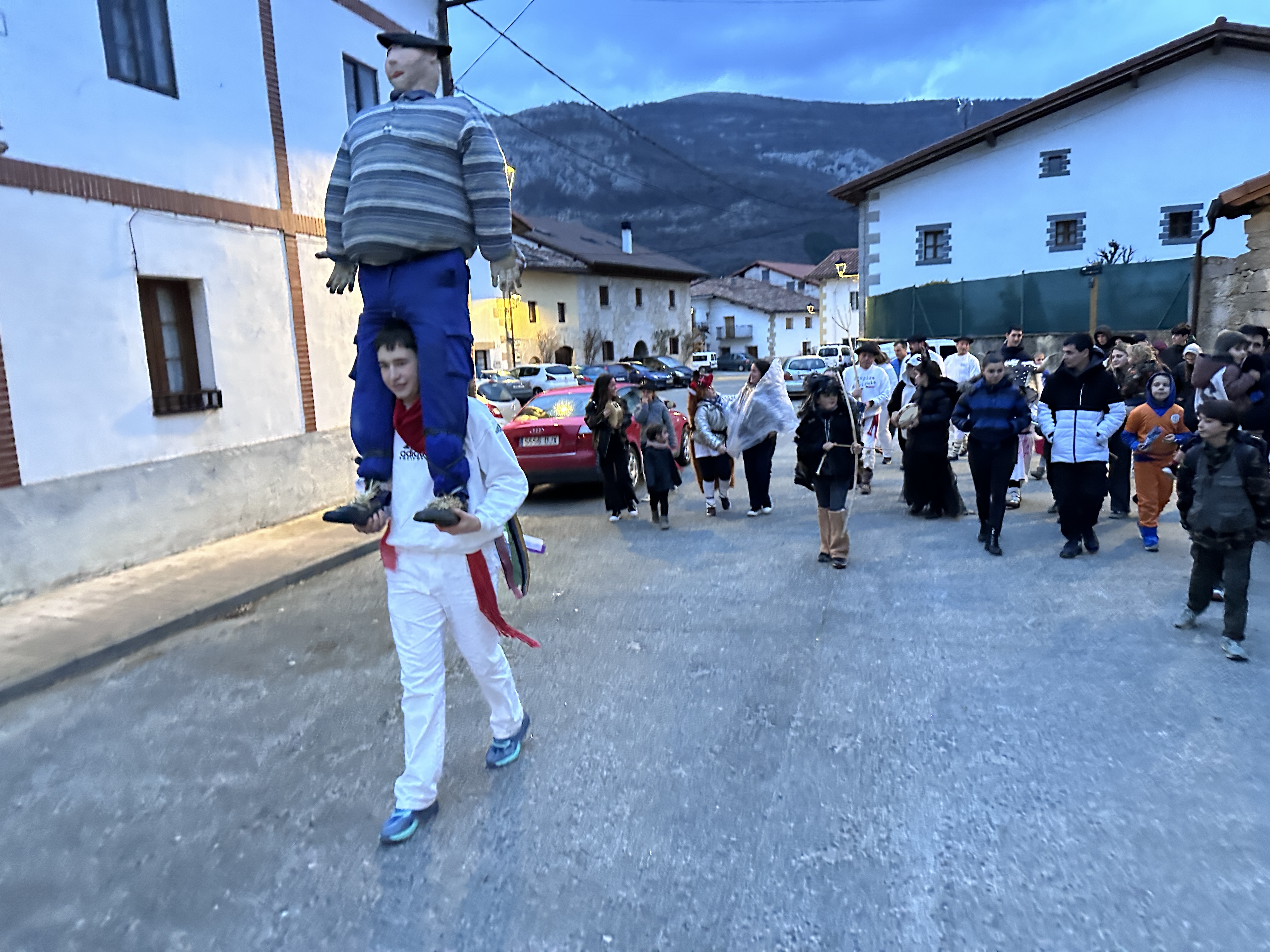 Gosaldu ondoren, txuriz jantzi ziren, bizkarraldean koloretako zintak zituztela, gerriko gorria eta burua estaltzeko koloretako zintak zituzten txanoak jarri eta kalera atera ziren eguerdian. Kalejiran ezpel paxoak jarri zituzten ezkongabeen etxeetan.