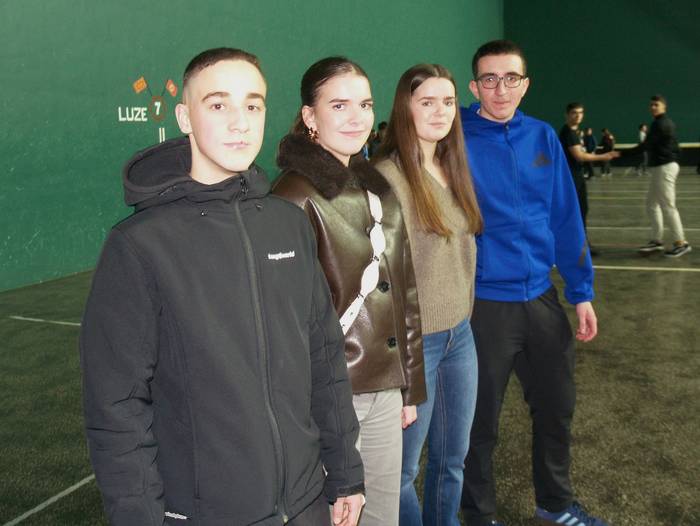 Alberto Maestre, Izar Osacar, Maitane Zabalza eta Aizeti Agirre aurten hasi ziren Sakanako Harri Jasotze eskolan eta "oso gustura" ari dira.
