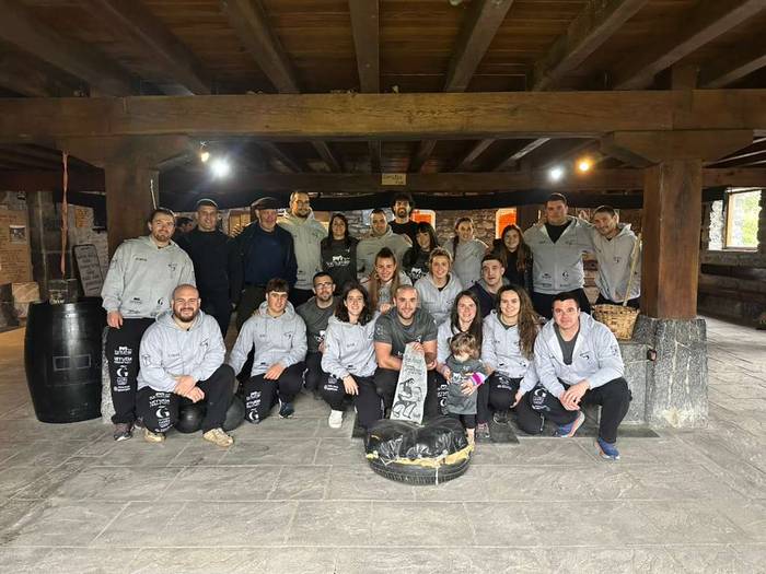 Harri jasotzean, Maisuaren etxean. Sakanako Harri Jasotze eskolako kideak Iñaki Perurenarekin bildu ziren Peru Harri museoan.