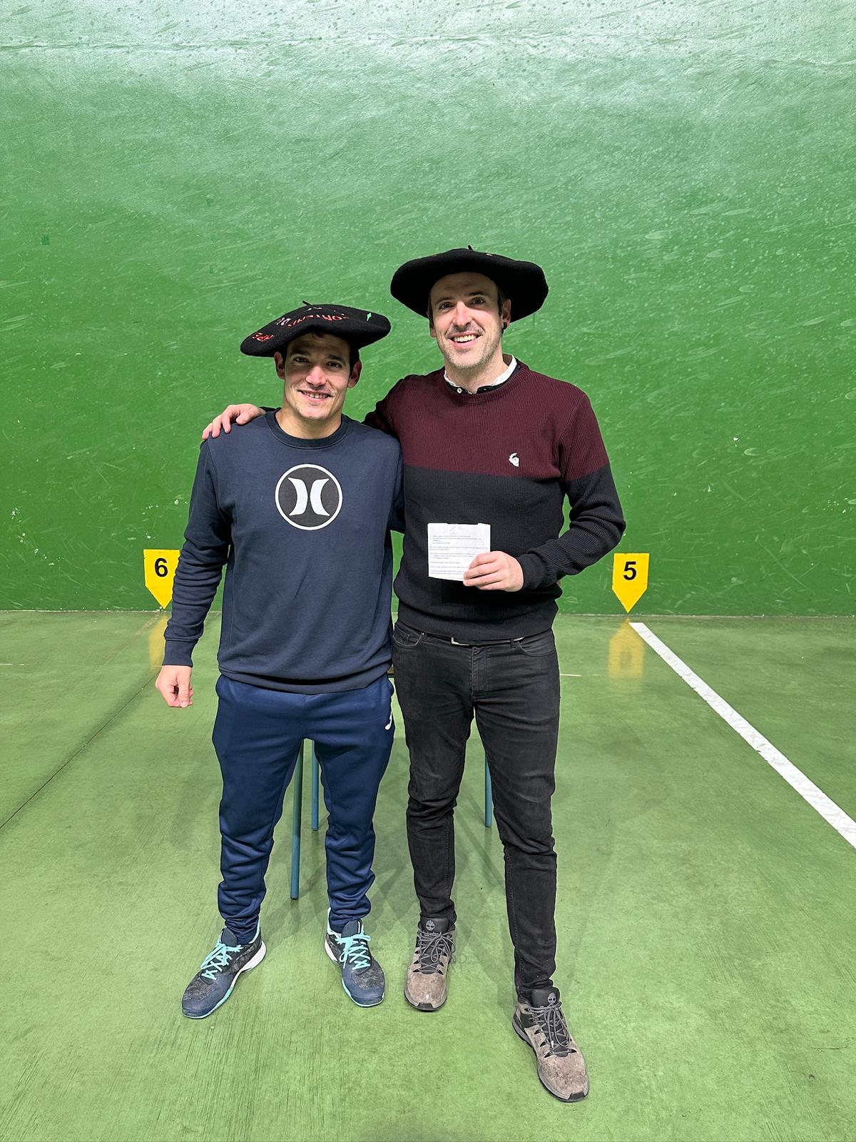 Nafarroako Binakako lehen mailako egungo pala txapeldunak zarete Fronton Lopez klubeko Javier Agirre eta biok.