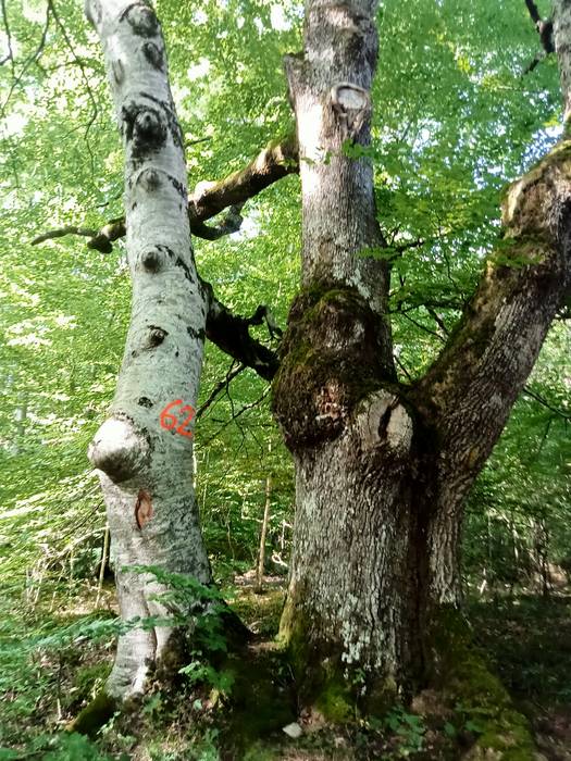 Itxura guztien arabera, botanika kontuetan eskarmentu eskasekoa izanik ere, ausartuko naiz esatera bi zuhaitzen artean haritza dela lehen sortutakoa eta ondoren pagoa sortuko zela, bertako haritzaren itzalpean. Itzalpean esaten dut, bere zentzurik positiboenean, haritz lekua baita inguru horretako gehiena.