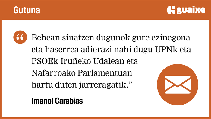 Behean sinatzen dugunok gure ezinegona eta haserrea adierazi nahi dugu UPNk eta PSOEk Iruñeko Udalean eta Nafarroako Parlamentuan hartu duten jarreragatik. Alegia, Euskal Federazioak nazioarteko txapelketan parte hartu ahal izatea gaitzesteko mozioa, Euskal Pilotaren Nazioarteko Federazioak adierazi bezala.