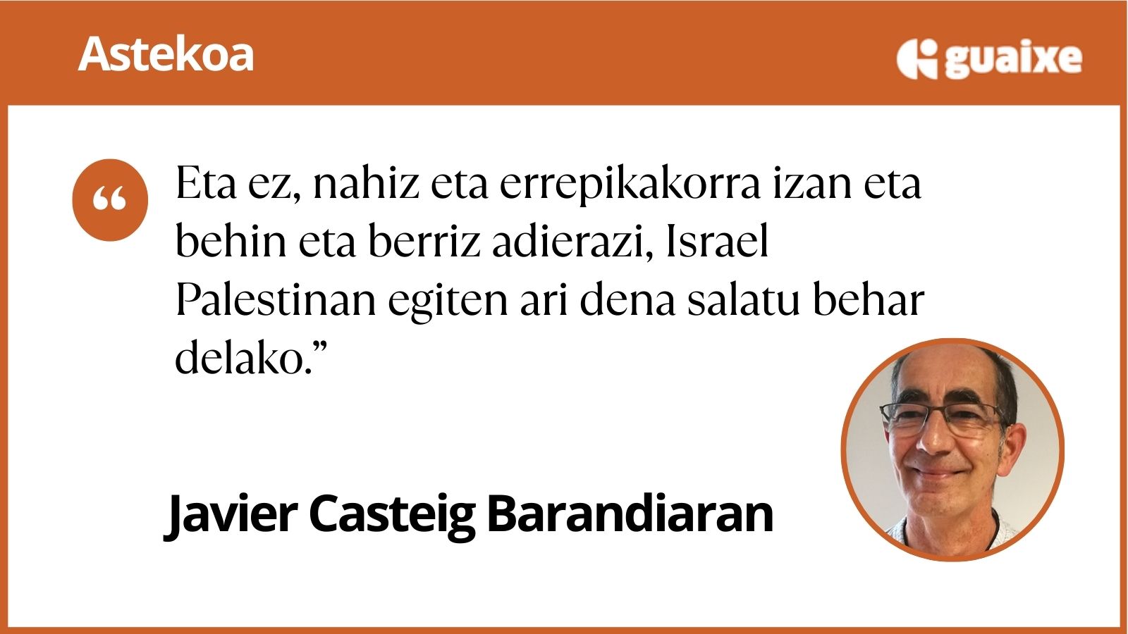 Ez, oraingo honetan ez. Eta ez, nahiz eta errepikakorra izan eta behin eta berriz adierazi, Israel Palestinan egiten ari dena salatu behar delako.