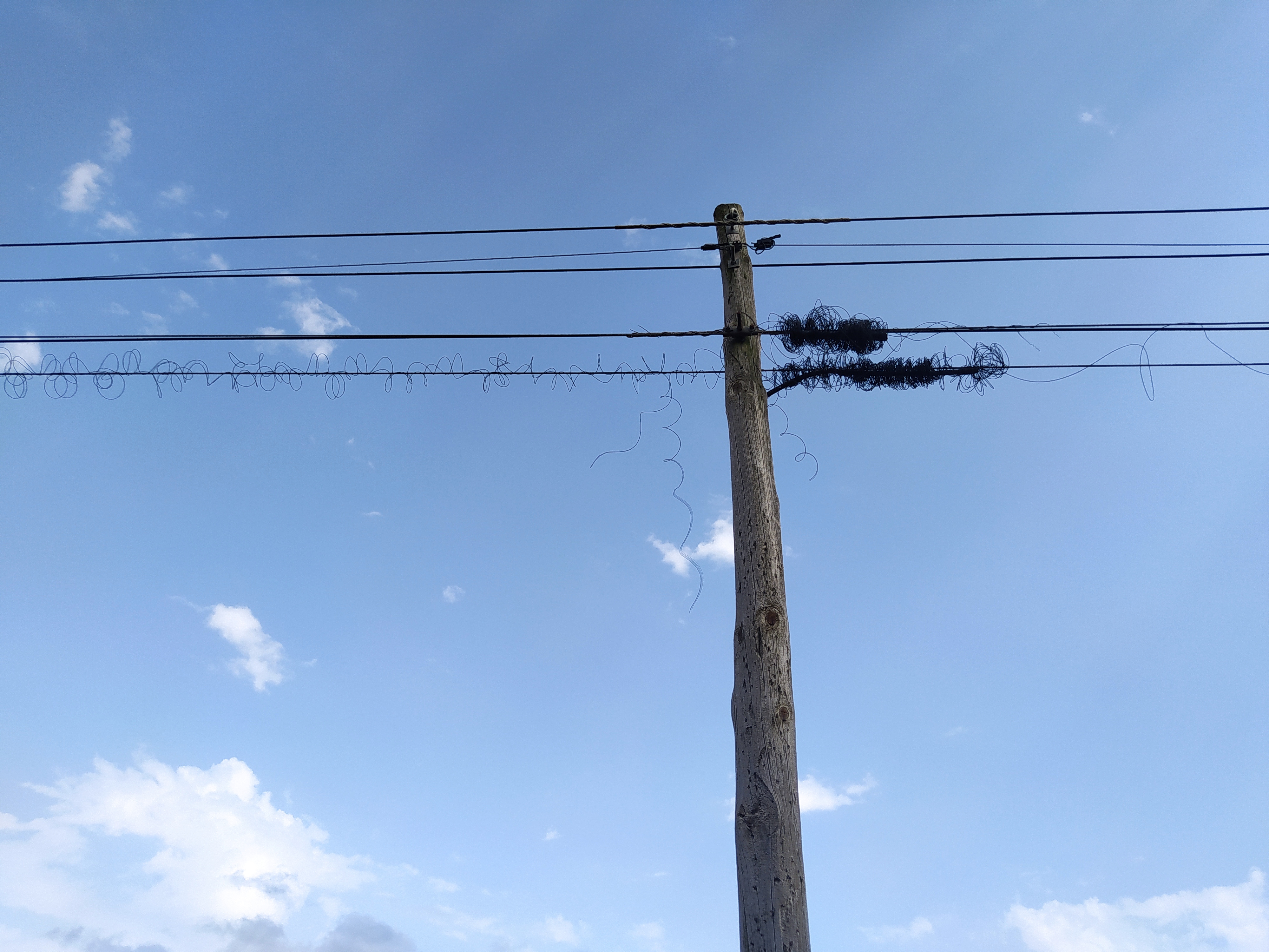 Sarean ez dabilenean ez duzu halako korapiloetan pentsatzen. Argazkikoa ez da horren irudikapena. Zutabe batetik bestera kableak elkarrekin egoteko beste hari batez inguratzen dute. Hari hori denborarekin hautsi egiten dela eta haizeak pilatu egiten du. Hori onenean, lurrean buka baitezake ere. Arakilgoa da irudia, baina hainbat tokitan gertatzen da.