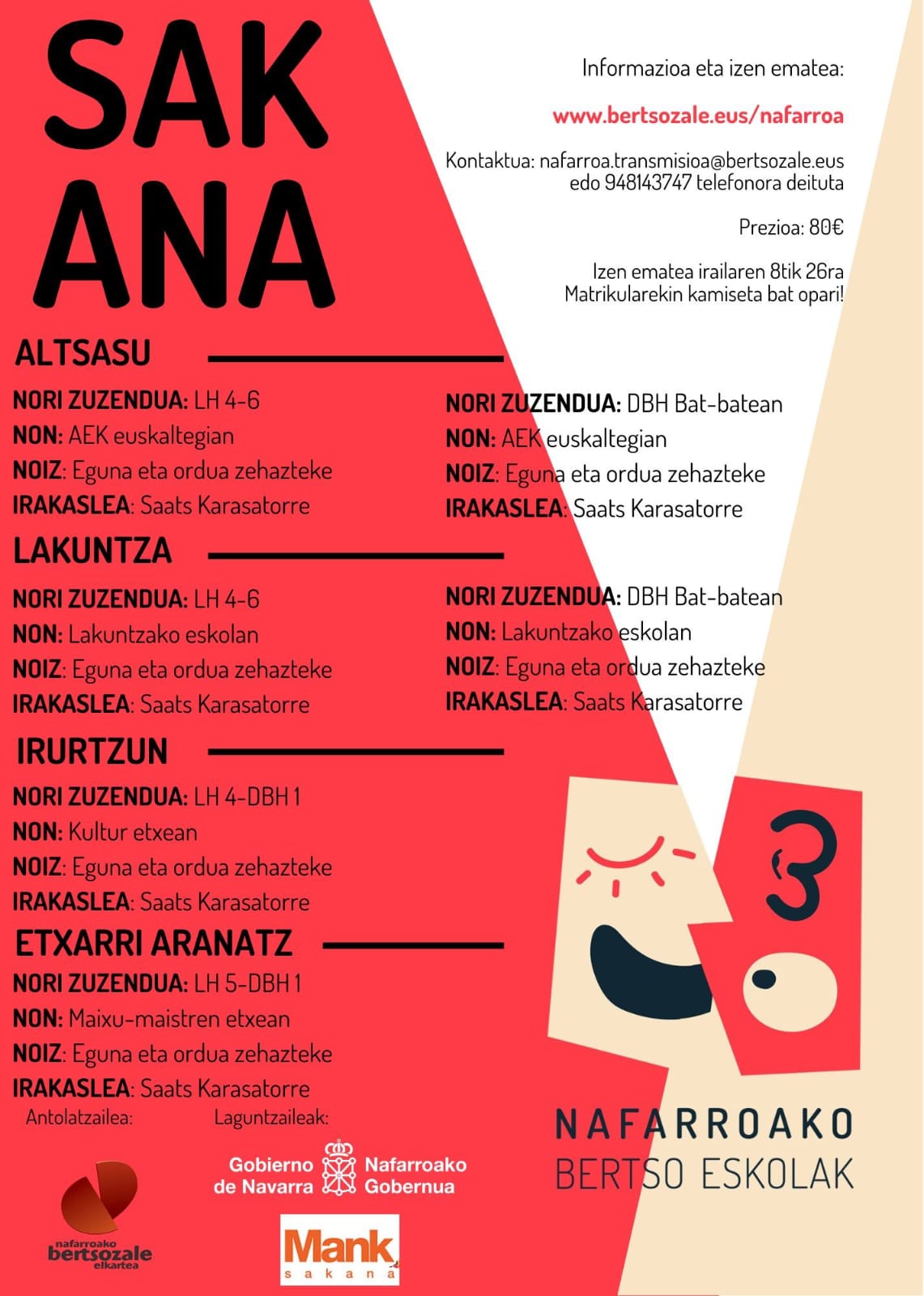 Informazio gehiago eta formularioa betetzeko aukera honako estekan: https://www.bertsozale.eus/eu/nafarroa/albisteak/Ireki-da-epea-Nafarroako-bertso-eskolan-izena-emateko-2025-2026-ikasturterako