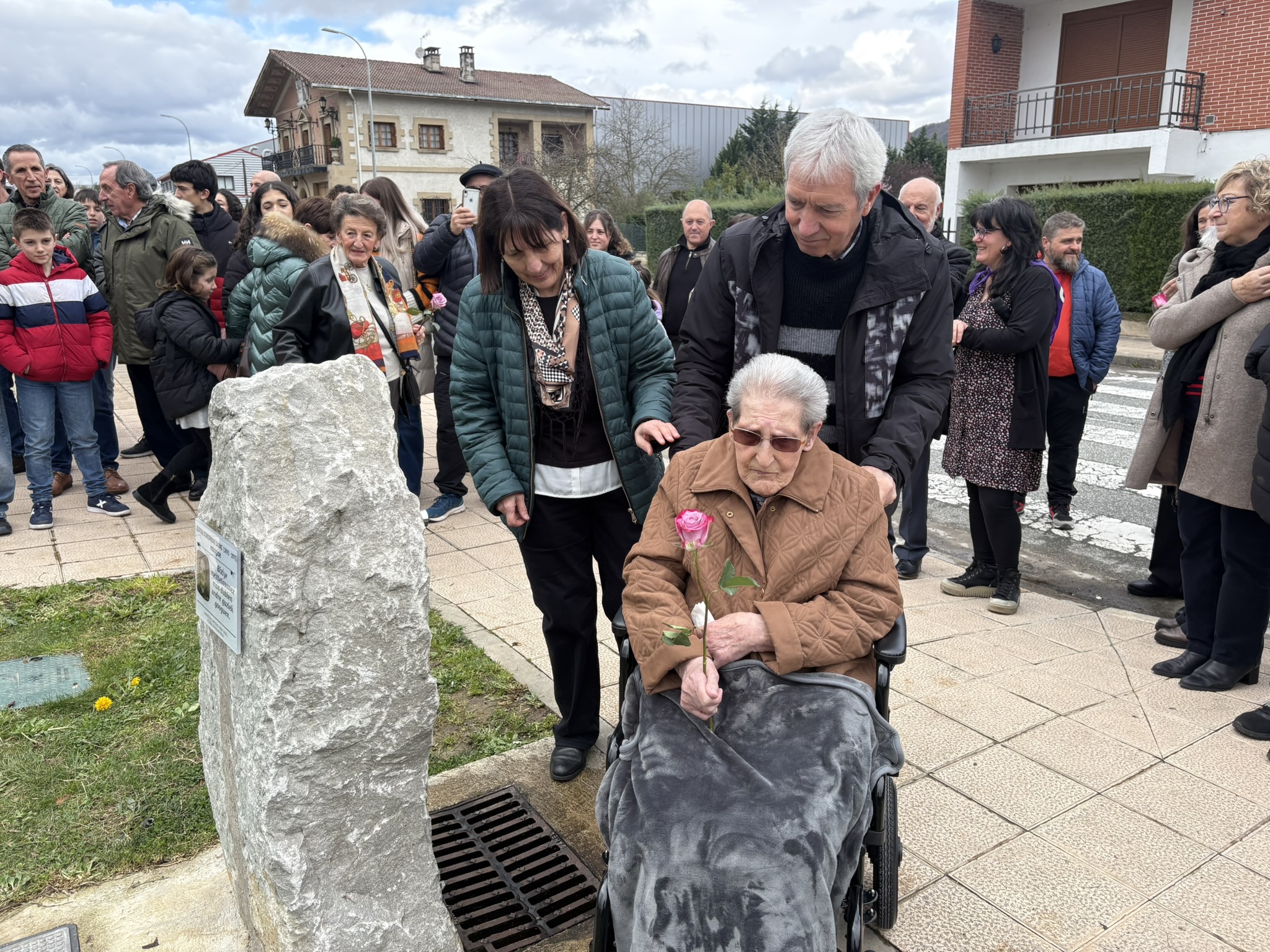 Aurreskuak, lore eskaintzak eta auzateak borobildu zuten Elvira Turumbayren eta herria egin duten emakumeen aldeko aitortza ekitaldiak. Puri Garziandia bilobak familia guztiaren esker ona azaldu zuen. "Eskerrik asko Udalari eta iragana eta oraina lotzen dituen keinu sinboliko hau posible egin duzuen guztiei".