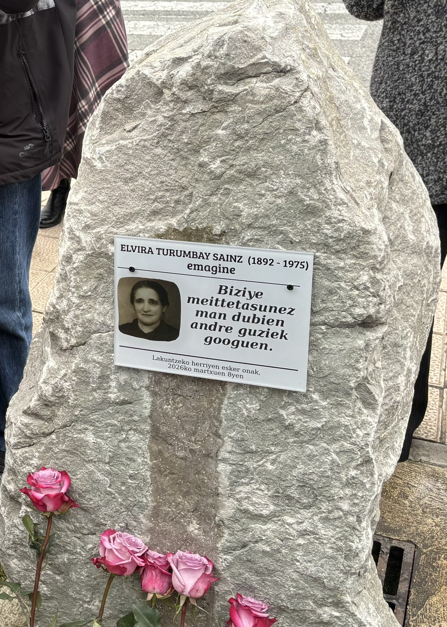 "Elvirak bizitza ekartzen lagundu zuen; gaur, gure herriak bere izena ekartzen du plazara, harrotasunez eta esker onez; zaintza eta komunitatearen garrantzia nabarmendu nahi dugu. Elvirarendako, eta bera bezala herria zaindu eta zaintzen dugun emakume guztiei aitortza adierazi nahi diegu".