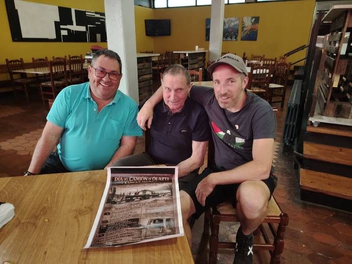 "Gure aitak oso lagunak ziren, kamioiei buruz hitz egiten egoten ziren, Churrero ere hortik dago...". Kamioiak dira olaztiar talde honen mintzagai nagusia, baina orain arte ez dute horrelako topagunerik antolatu; noizbait bazkariren bat egin izan dute, San Cristobal egunean, hain zuzen, baina lehenengo aldia da bilduko direla. "Olatzagutian ez da inoiz kamioen inguruan ezer egin".