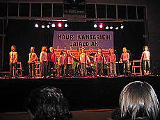 Sakanako eta Larraungo haur eta gaztetxoek kantuan emanen diote ongi etorria udaberriari. Altsasuko Iortia kultur gunean bilduko dira martxoaren 20an, ostiralean, 18:00etan. 2009ko Haur Kantari Jaialdiaren 3. saioan 15 talde igoko dira oholtza gainera, Lakuntzako 7 talde, Altsasuko 5 eta Lekunberriko 3. Euskal Kantuzaleen Elkarteak antolatuta, martxoaren 6an hasi zen 2009ko Haur Kantari Jaialdia. Antsoain eta Tuterako saioen ondoren, 3. saioak Sakanara ekarri du jaialdia. Martxoaren 28an Elizondotik pasa eta gero, apirilaren 5ean emanen diote amaiera 2009ko Haur Kantari Jaialdiari Iruñeko Gaiarre Antzokian. Lehen Hezkuntzako eta DBHko haur eta gazteek parte hartzen dute jaialdian. Lakuntzarrak eta altsasuarrak kantuanUrtea joan eta urtea etorri, Nafarroako Haur Kantari txapelketak agerian uzten du sakandarren kantu zaletasuna. Aurtengoan ez da gutxiagorako izanen: 15 talde igoko dira oholtza gainera eta horietan 12 Sakanakoak dira. Lakuntzako ikastetxe publikoan eta musika eskolan eta Altsasuko ikastetxe publikoan sortu dira taldeak. Etorkizuneko kantarien harrobi ederra lantzen ari dira horietan denetan. Sakandarrekin batera, Lekunberriko 3 talde igoko dira oholtza gainera. Altsasuko saioan nahiz beste hirutan nabarmentzen diren taldeek apirilaren 5ean, Iruñeko Gaiarre Antzokian abesteko gonbidapena jasoko dute. Sakanako taldeakLakuntzako ikastetxe publikoa: -Alaiak taldea (7-9 urte). Egun da Santimamina abesti herrikoia. Abeslariak: Leire Meaza, Nekane Mendieta, Cristina Añazco, Ariane Andueza, Munia El Marhoum, Iratxe Flores, Garbiñe Goikoetxea, Kristina Zubillaga, Leire Sagarzazu, Idoia Torrente, Ainhoa Cartagena, Silvia Amores, Amets Cerviño, Naroa Galindo eta Jasone Auzmendi. Instrumentuak: Martin Larraza (gitarra) eta Josu Cerezoren (perkusioa).-Beñat Torrente eta Andoni Egurtza bikotea: Ez dut atzera egingo (Bide Ertzean) Instrumentuak: Mikel Auzmendi eta Martin Larraza (gitarrak) eta Joseba San Sebastian (baxua).-Munia El Marhoum bakarlaria: Josetxo Olaberriko kantu herrikoia. Instrumentua: Emilio Arias (zanfona).-Olazkitturri taldea (1. maila): IrrifarreaAbeslariak: Iker Andueza, Iñaki Cabrera, Aroa Cerezo, Gorka Egurza, Jokin EL Marhoum, Saioa Eskudero, Anitz Larunbe, Amets Oteiza, Sergio Romero eta Cristina Añazco. Instrumentuak: Aitor Mozo (akordeoia).Lakuntzako musika eskola-Handien taldea: Amets bat abestia. Abeslariak: Aitana de Miguel, Oihane Lizarraga, Laida Etxeberria, Amets Lertxundi eta Uxue Callejas. Instrumentuak: Leire Lizarraga eta Jon Goikoetxea (guitarra), Josu Mozo, Mikel Flores eta Joanes Satrustegi (perkusioa) eta Ane Bañasco eta Leire Olazaran (trompeta).-Txikien taldea: Sekretua abestia. Abeslariak: Iratxe Flores, Garbiñe Goikoetxea, Carla Lizarraga, Laura Lizarraga, Mattin Petriati, Gari Recondo, Asier Reparaz, Iraki Tadeo, Ariane Andueza, Munia El Marhaum, Naroa Larraza, Nekane Mendieta, Gaizka Sagarzazu eta Itsaso Zelaia.-Lakuntzako taldea: Kaixo abestia.Abeslariak: Andoni Egurtza Beñat Torrente, Raquel Amores, Andrea Recondo, Irune Vitoria, Aitor Lopez de Sabando, Irati Lizarraga, Irantzu Razkin, Oier Larunbe, Ander Cartajena eta Oihane Garbirondo. Intrumentuak: Joanes Satrustegi (bateria), Amets Lertxundi (pianoa), Leire Lizarraga eta Oihane Lizarraga (guitarra) eta Laida Etxeberria eta Mikel Flores (akordeoia). Altsasuko Zelandi ikastetxe publikoa-Sentimen taldea (6. maila): Hitz galduak abestia. Abeslariak: Nerea Navarro, Zaira, Raul, Mikel, Itxaso, Aintzane, Nerea Lapuente, Idoia, Marina, Olatz, Ane eta Marta.Instrumentuak: Erkuden Aldasoro (pianoa) eta Idoia Alonso (guitarra).-Oskola taldea (5. eta 6. maila): Txokolatea.Abeslariak. Irati, Ane Costa, Ane Palomo, Arrate, Henar, Iker, Iñaki, Cristina, Eider, Idoia, Maite, Amaia, Nerea Llamas, Nerea Lapuente eta Aintzan.Instrumentuak: Erkuden Aldasoro (pianoa) eta Carlos Manero eta Idoia Alonso (gitarra). -Izotz taldea (5. eta 6. maila): Pinguinoa kantua. Abeslariak: Mirari, Ariadna, Naiara, Ainhoa Exposito, Asier, Oier, Adrian, Janire, Julene, Aintzane, Olaia, Ainhoa, Palomino, Olatz, Idoia, Marina, Irati eta Miren. Instrumentuak: Naiara, Mirari, Oier, Janire, Asier eta Adrian (txiribitua).-Aintzane eta Jaione Diaz bikotea: Zure doinua Instrumentua: Idoia Alonso (guitarra).-Jone Rubio eta Jaione Diaz bikotea: Mugimenduan abestia Instrumentua: Erkuden Aldasoro (pianoa).