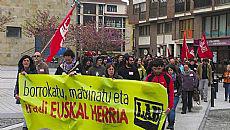 Maiatzaren lehenean, langileriaren nazioarteko egunean, milaka lagun atera ziren kalera Euskal Herrian, mobilizatu eta kalera ateratzeko arrazoi ugari daudela erakusteko. LAB sindikatuak Altsasun deitu zuen manifestazioa, ELAk bere jarraitzaileak Bilbon bildu zituen eta UGT eta CCOO sindikatuek manifestazio bateratua egin zuten Iruñean. ELAko Adolfo Muñozek "mobilizatu beharra dagoela" aldarrikatu zuen, maiatzaren 30erako deituta dagoen greba orokorrera deituz. CCOOek eta UGTk adierazi zuten "urteetan lortutako eskubideak atzaparkada batean desager daitezkeela", eta besteak beste "murrizketei buruzko erreferenduma edo, bestela, hauteskundeetara deitzeko" galdegin zuten. Sakanaren errekorra: 2008 langabetuLABek Altsasun deitutako manifestazioarekin 400 pertsonek egin zuten bat. "Sakanan eta beste 23 eskualdeetan milaka langile atera ditugu kalera" nabarmendu zuten bukaerako ekitaldian. Krisia sortu zuela 6 urte pasa direla gogoratu zuten, eta Euskal Herriak "emergentzia egoera" bizi duela. "Sakanak errekor berri bat du: langabetuak gaur 2008 dira Sakanan. Gazteen gehiengoa langabezian dago, langabetuen erdia baino gehiago emakumea da eta langabetuen %40ak lan bat aurkitzen zailtasunak izango dituzten 45 urtetik gorako langileak dira. Itxitako enpresek enpresa txiki eta komertzioak zulora eraman ditu" azpimarratu zuen LABeko ordezkariak. Sakanaren egoera gordinaren isla, elikagai bankuak plazaratutako datua ekarri zuen: "2012 urtean Sakanan 59 tona elikagai banatu ziren". Honi guztiari aurre egiteko "2010an abiatutako bide propioa" ekarri zuten gogora. "Sakanatik Sakanarako eredua bulkatzen ari gara eta horretarako guztien ekarpenak beharrezkoak dira". Ildo horretan, maiatzaren 30eko grebarekin bat egiteko deia egin zuen LABek. "Sakanan 7. greba orokorraren aurrean gaude, baina mobilizazioak beharrezkoak dira, gauza asko lortzen dituztelako, Sunsundegui ez ixtea, kasu" ondorioztatu zuten. Bestalde, Sunsundeguiko kaleratuak izan zituen gogoan Sakanako LABeko arduradunak. "Jazarpen sindikala jasan dute, eta euren borrokagatik ez balitz gaur Sunsundegui itxita egonen litzateke" azpimarratu zuten.