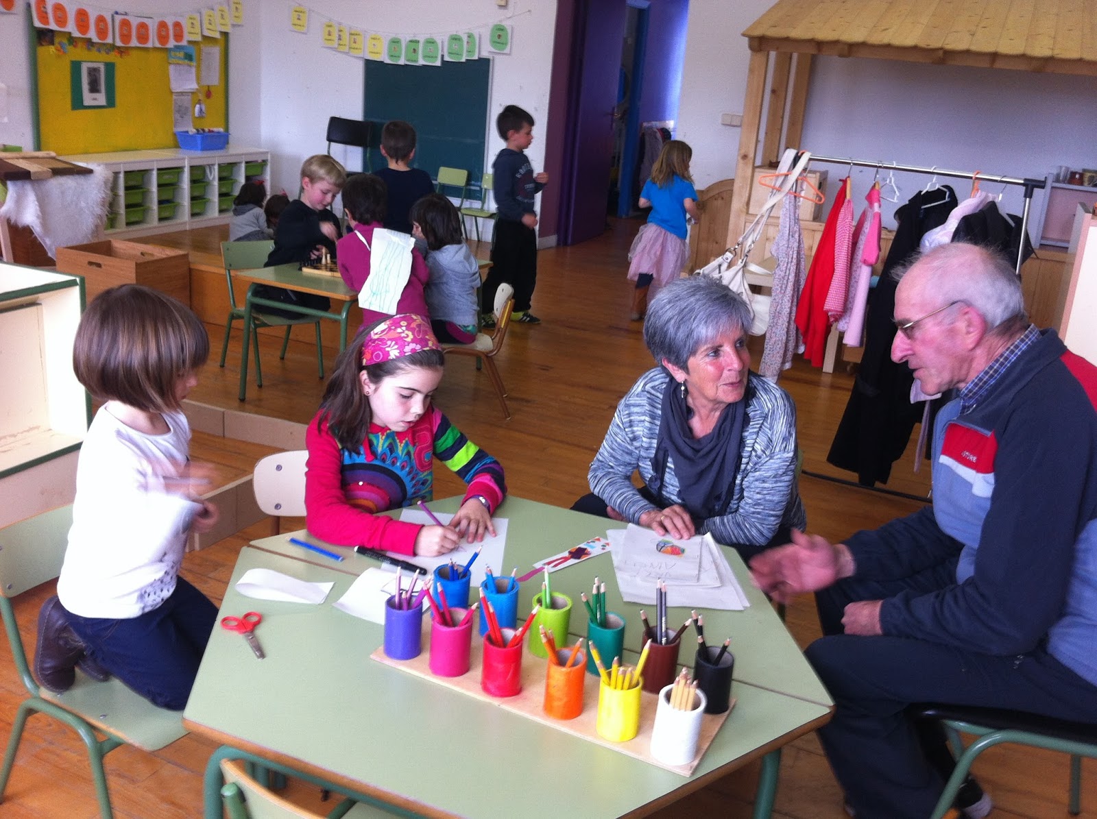 Atzokoan berriz, aitona Manuel eta amona Kontxik lagundurik etorri zen protagonista eskolara. Gurasoak, ahizpa eta Xiberu ere izan ziren gurean, eta poztasun haundiz agurtu genituen.