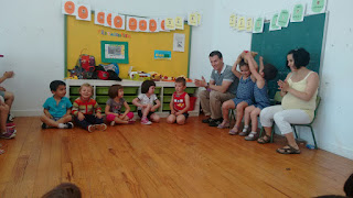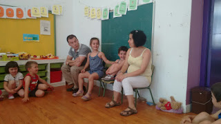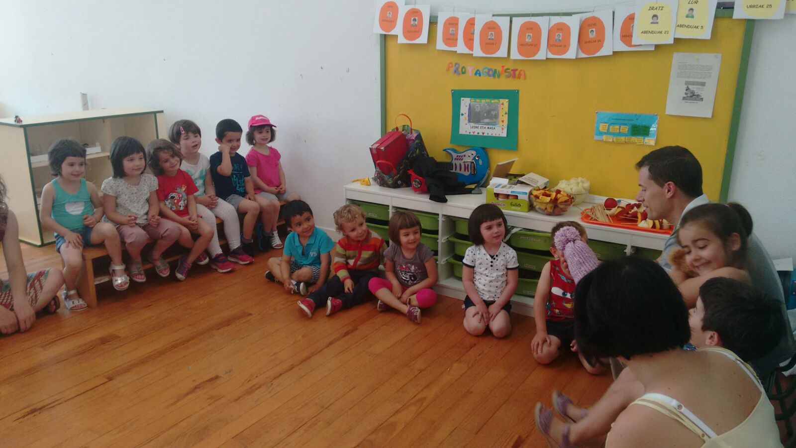 Goiza giro bikainean igaro genuen. Etxetik ekarritako jostailuekin jolastu, aita-amen eskola garaien istorioak entzun eta alaben jaiotza nolako izan zen kontatu ziguten besteak beste. Izenak nola aukeratu zituzten kontatu ziguten ere. Laister jaioko den nebaren inguruan ere mintzatu ginen.
