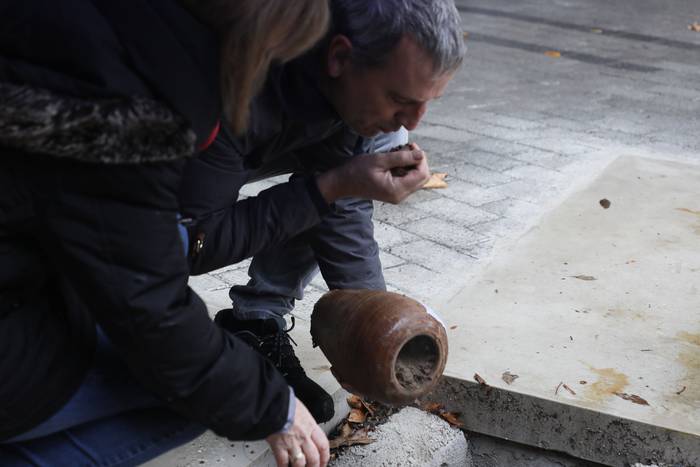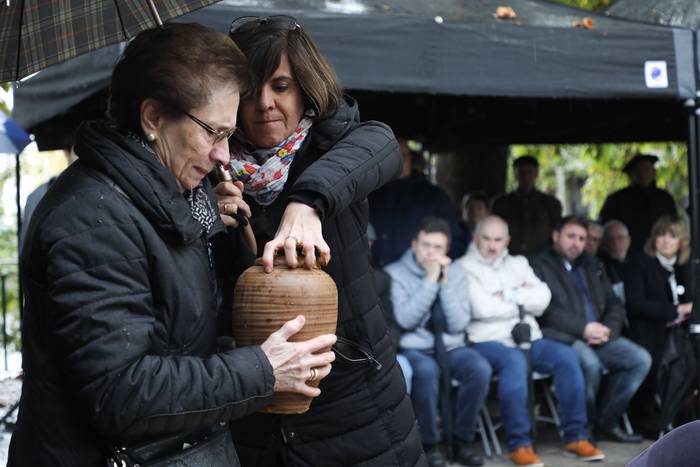 Irailaren 4an ontzi hartan jasotako lurra hilaren 19az geroztik Iruñeko atxilotze guneen oroimenezko zentroan dago, Nafarroan barnako hainbat hobietako lurrarekin batera nahastuta. Lurra bota zutenak eraildakoen edo Iruñeko atxilotze zentroetan egondakoen senideak izan ziren. Alberto Oderiz eskultorearena Hipogeo memoria gune horizontala, harrizko 62 blokez osatuta, Nafarroan induskatu diren adina hobi. Harri horietako baten azpian da hobietatik jasotako lurra. Oroimenezko gunea Aralar kalean dago, zezen plazaren atzean; inguruan bost atxilotze zentro zeuden.