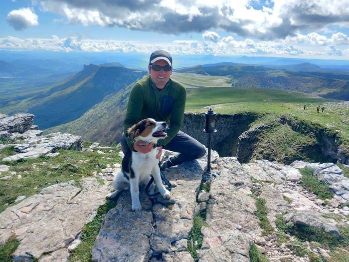 Senarrak aukeratu zuen, mendian ibiltzeko konpainiako txakurra nahi zuelako. Bera gustura, eta ni ere bai. Nigatik balitz, txikiago bat aukeratuko nuke, baina kitto. Arraza horretako txakurrak oso mugituak, urduriak dira, eta mendi bueltetarako oso egokiak dira. Hala ere, etxean gurekin bizi da. Nire ustez, pertsonekin zenbat eta harreman handiagoa izan, orduan eta maitekorragoak dira. Primerako elkarbizitza dugu. Gainera, herri batean bizi gara. Kalera atera eta etxe ondoan ibiltzeko lur zabala du, eta oso aske egoten da.