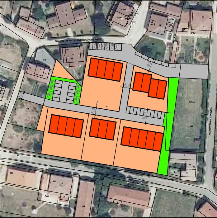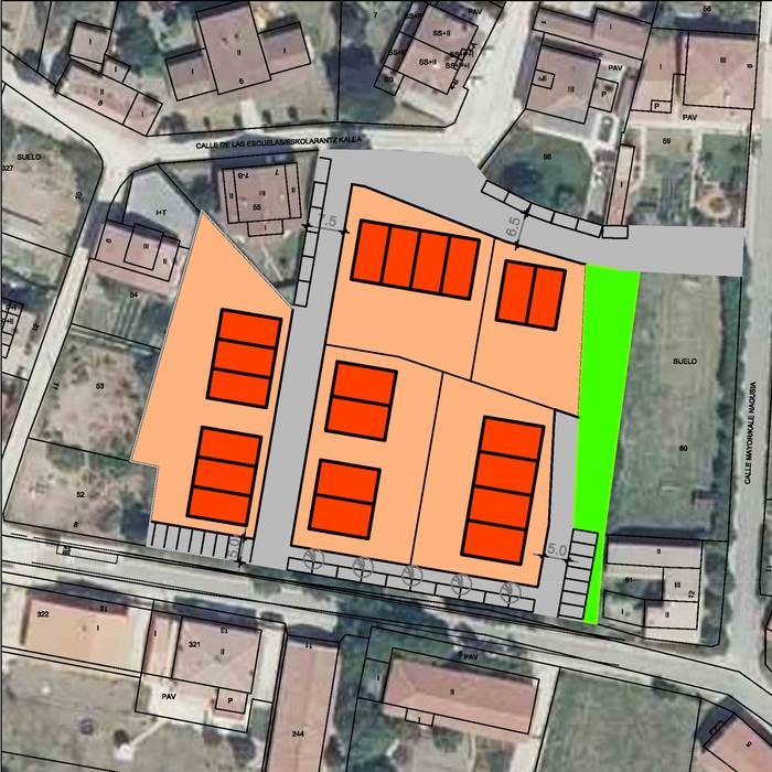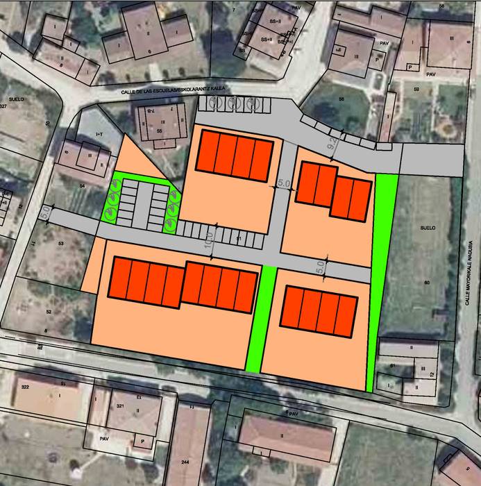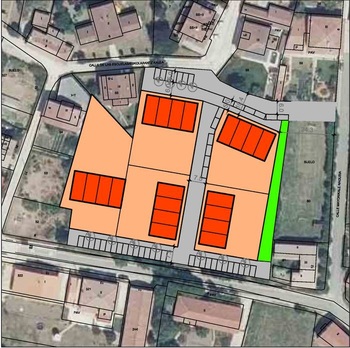Plazatik heldu den kalea Goailde kaleraino luzatuko litzateke, berdegune ondotik ere joateko aukera legoke. 16 etxebizitza eraikiko lirateke. Guztietara autoarekin iristeko aukera legoke.