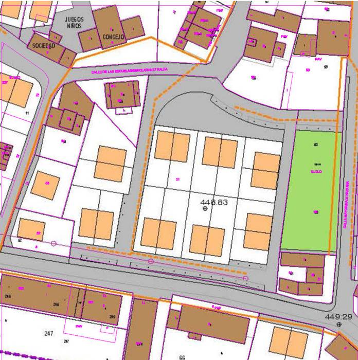 Aipatu partzela kontzeju etxearen eta markesinaren artean dago eta udalak erosi egin zuen etxeak eraikitzeko aukera izateko. Izan ere, etxebizitza premia nabaria da bai Hiriberri Arakilen bai ibar osoan. Partzelak 7.127,26 m2-ko azalera du. Indarrean dagoen hirigintza arauaren arabera 18 etxe elkarri atxikiak eraiki daitezke (hiruko sei eraikin) edo 20 etxebizitza (hiru etxe elkarri atxikitako lau eraikin eta lau pisuko bi eraikin). Eraikinek behe solairua eta beste bi izanen lituzkete.