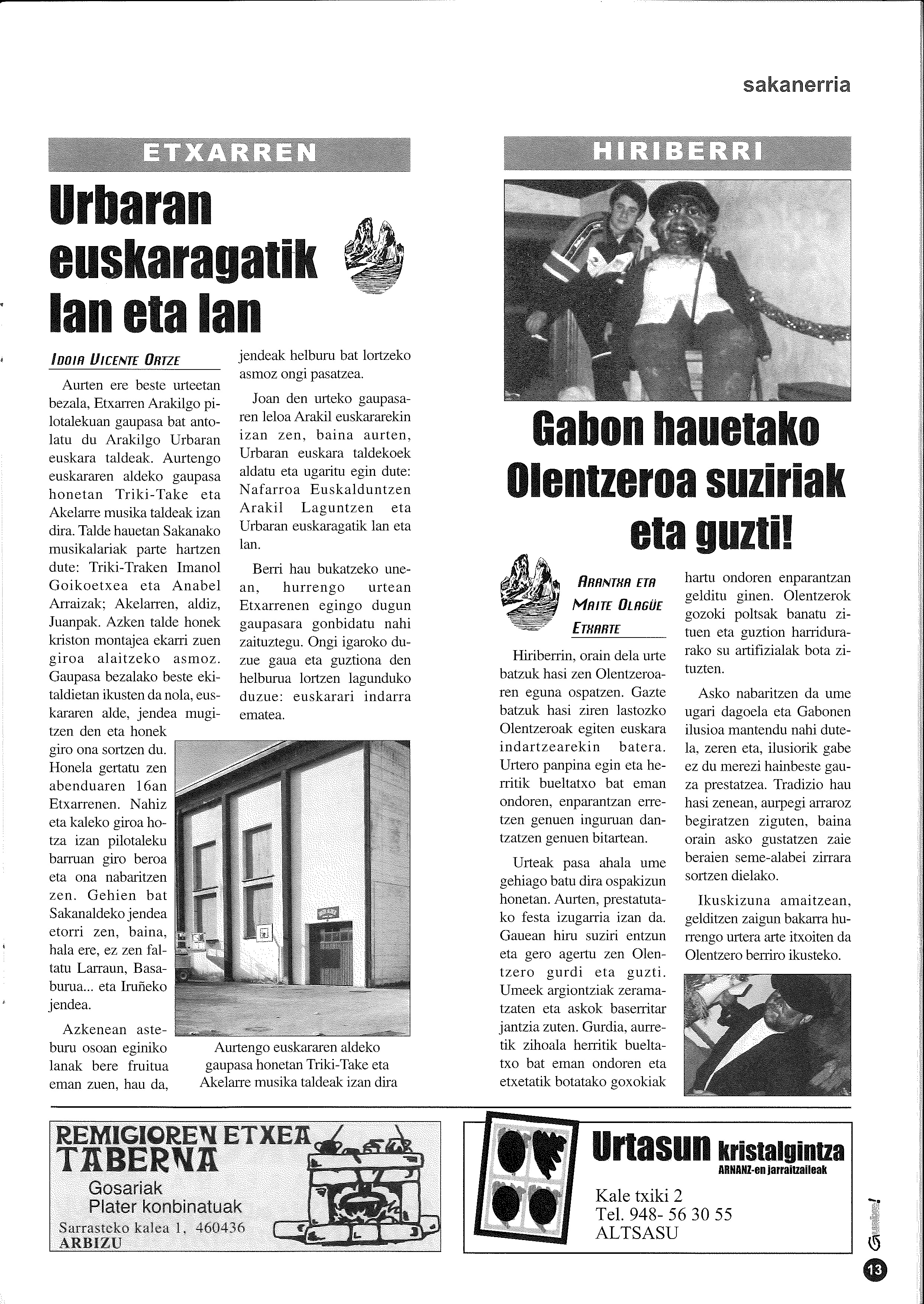 Arakilgo euskara taldeak, Urbaranek gaupasa antolatu zuen Etxarrenen abenduaren 16an. Musika jaialdirako honako leloa aukeratu zuten Urbarangoek: Nafarroa euskalduntzen, Arakil laguntzen eta Urbaran euskaragatik lan eta lan. Oholtzan musikari sakandarrak zituzten bi talde: Imanol Goikoetxea eta Anabel Arraizaren Triki-Trake eta Juanpa Agirreren Akelarre. Sakandarrez aparte Larraun, Basaburua eta Iruñetik jendea joan zen.