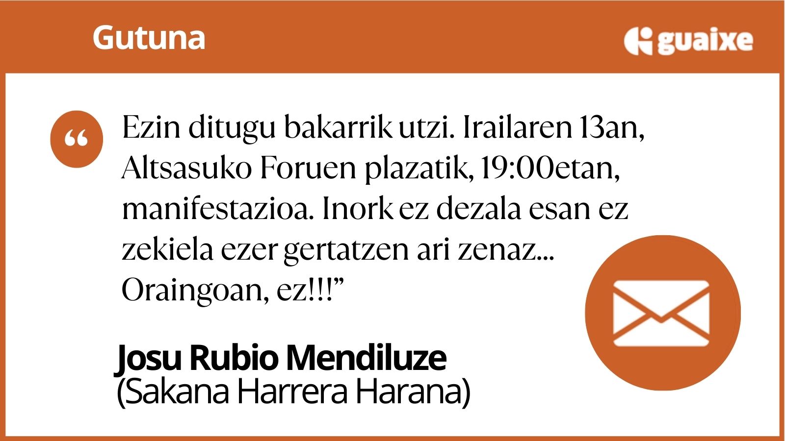 Jarrai dezagun egunez egun mobilizatzen, Faxismoak dituen mila aurpegiari aurre egiten. Ezin ditugu bakarrik utzi. IRAILAREN 13AN, ALTSASUKO FORUEN PLAZATIK, 19:00ETAN MANIFESTAZIOA.