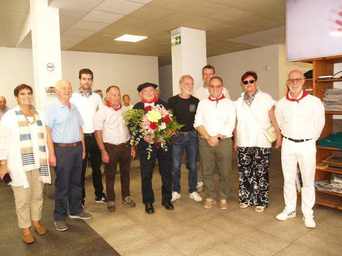 Altsasuko jubilatu elkartean lagunekin gosaldu ondoren jaso zuen udalaren lore sorta Joaquin Regales Sierrak, azaroaren 11n 100 urte beteko dituenak.