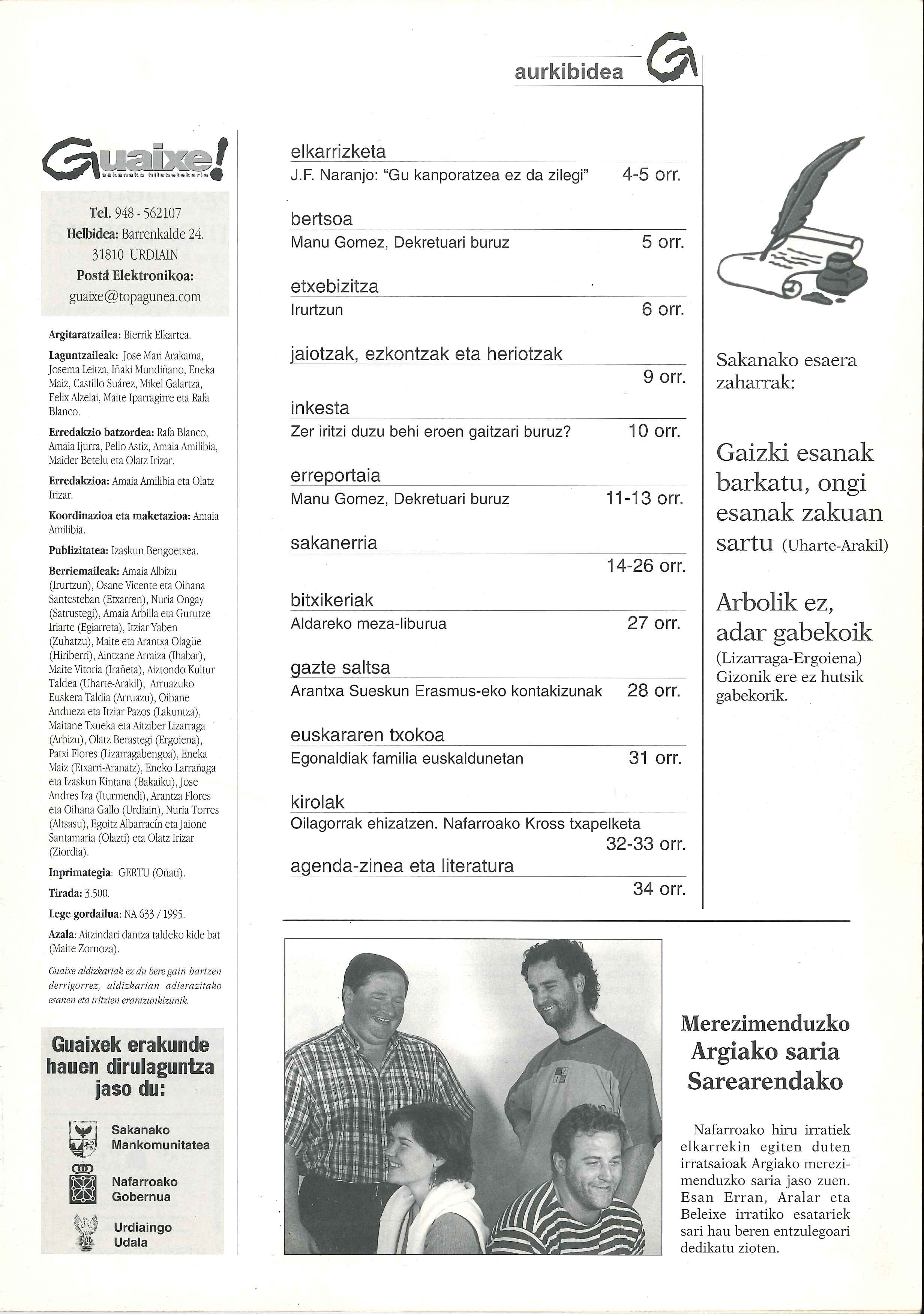 Aralar, Esan Erran eta Beleixe Irratiek (Guaixe Irratia gaur egun) martxan jarritako Sareak Argia aldizkariaren merezimenduzko Argia Saria jaso zuen. Tokiko euskarazko hiru irratiek elkarlanari ekin zioten, Sarea izeneko ekimenari, 2000ko lastailaren 2an. Helburua zen arlo gehiagoetara iristea eta programazioa zabaltzea. Baita aldamenean dauden Larraun, Lekunberri, Araitz-Betelu, Basaburua, Imotz, Ultzama, Odieta eta Sakana elkarren berri izatea. Elkarlanak aitortza jaso zuen.