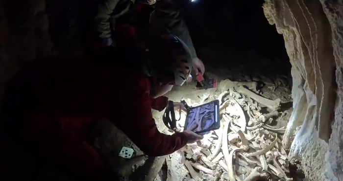 Lezearen diziplina anitzeko miaketa egin zuten: paleontologia, biologia, geologia, topografia… Guztira 22 pertsona jaitsi ziren. Paleontologia esku hartzea lezean, hezurdura jasotzeko. Ondoren hezurrak garbitu, inbentariatu eta neurtu zituzten. Genetika ikerketa egiteko laginak hartu zituzten hezurretatik. Bestalde, morfologia azterketari esker dakite bisontea dela. Baztertu egin dute estepako bisontea dela, handiagoa zelako eta duela 9.000 urte desagertu zelako.