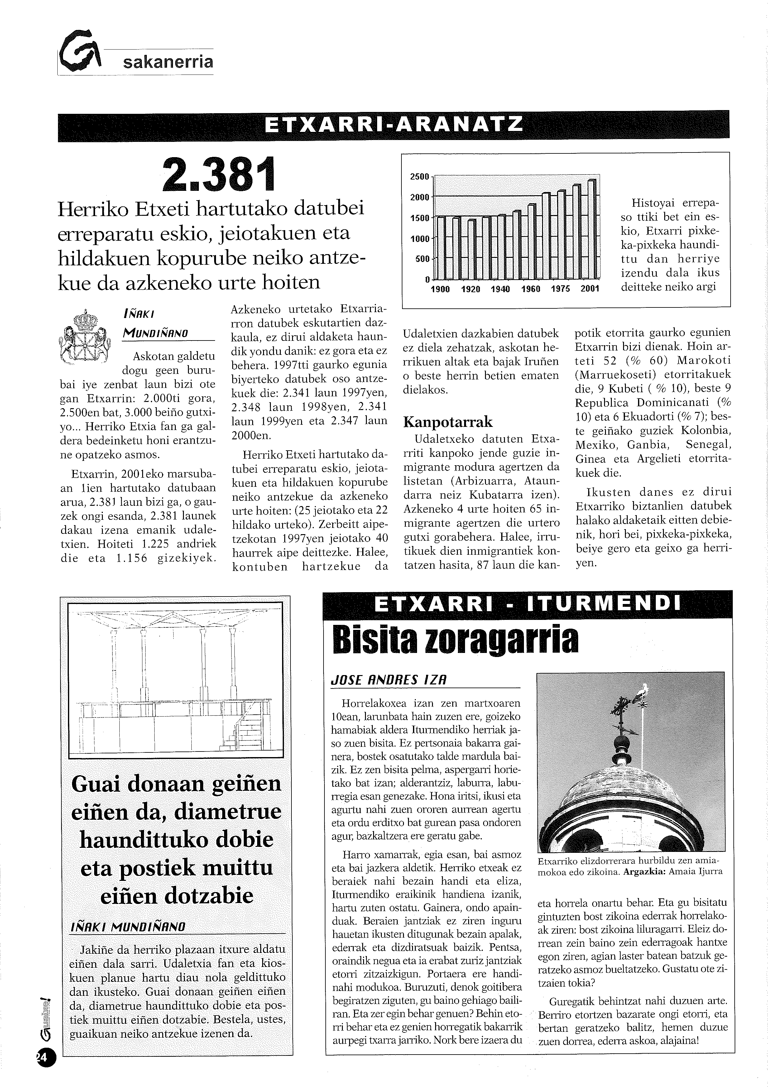 Zikoina talde bat agertu zen Iturmendin martxoaren 10ean, larunbat eguerdian. Bost amiamokoz osatutako taldea zen Iturmendin une batez atsedena hartu zuena, ordu erdi inguru. Eliz dorrearen gainean pausatu ziren eta iturmendiar guztiek haiek ikusteko aukera izan zuten. Etxarri Aranatzen ere ikusi zuten hegazti horietako bat, hura ere eliz dorrean. Gurean ikustea ezohikoa den hegaztiak herritarren arreta bereganatu zuten.