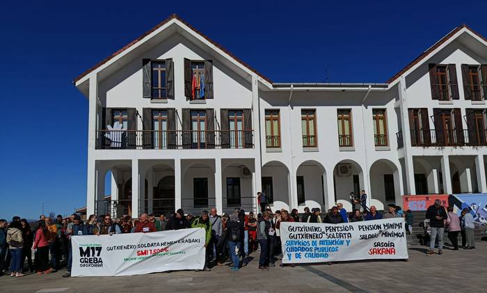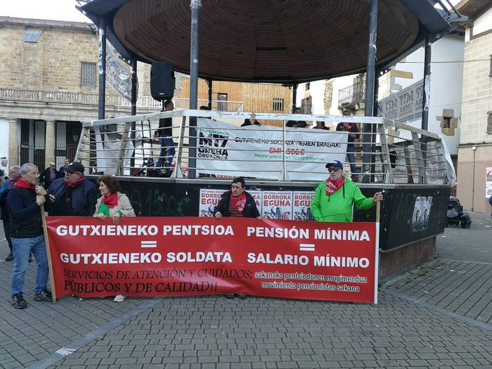 Pentsiodunen mugimenduak astelehenero Altsasun egiten duen elkarretaratzean greba orokorrarekin bat egin zuen eta gaurko greba egunean eta mobilizazioetan "aktiboki" parte hartzera deitu du; gutxieneko soldata eta pentsio duin, "nahikoak eta denondako", aldarrikatzen du. Altsasun 18:00etan eginen den Sakana mailako manifestazioan parte hartzera deitu du.