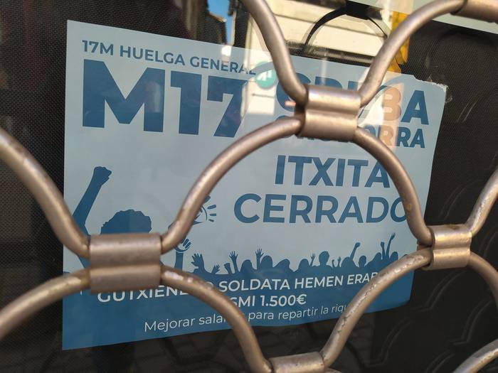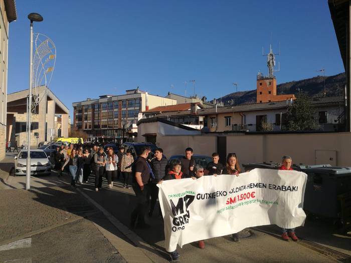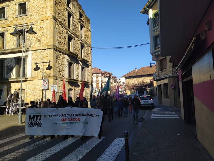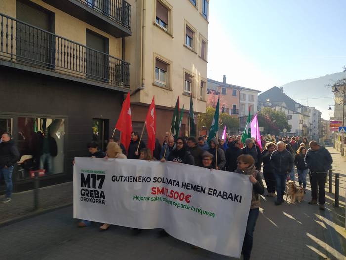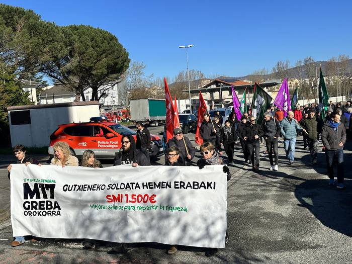 Gutxieneko soldata 1500 euro aldarrikatzeko greba orokorra egin dute ELA, LAB, Etxalde eta HIRU sindikatuek. Goizean mobilizazioak eta piketeak izan dira, besteak beste, Irurtzunen, Etxarri Aranatzen, Bakaikun eta Altsasun.Â