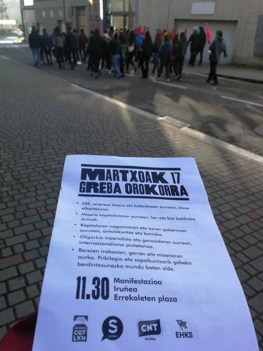Salaketan harago joan nahi duen greba orokor nafarra: CNT, CGT, Solidari eta EHKSk martxoaren 17rako deialdia egin dute. Hainbat eragilek bat egin dute.