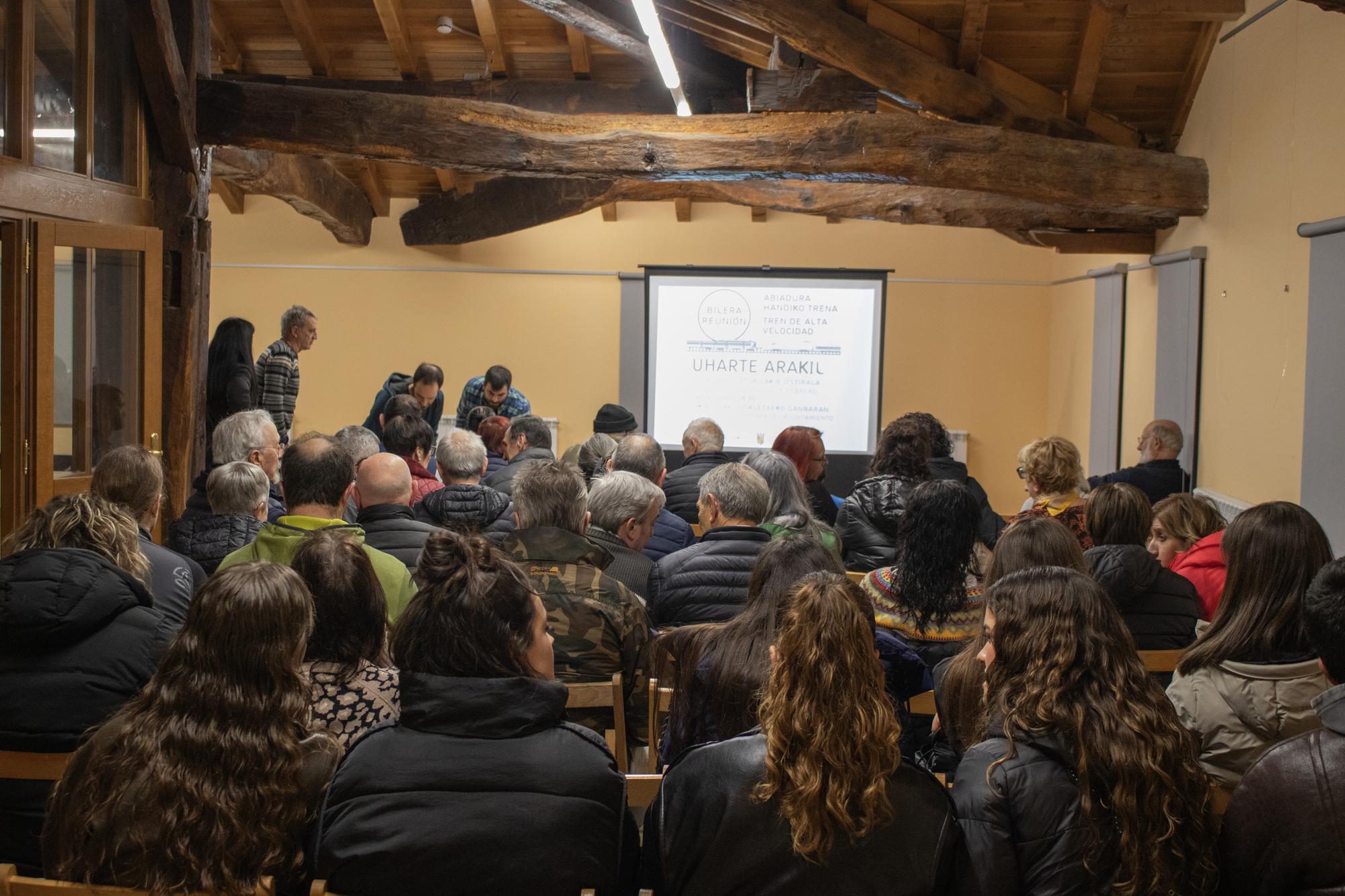 Uharte Arakilgo alkate Txomin Uharte Baleztena eta Sakana Trenaren Alde plataformako kideek Abiadura Handiko Trenaren proiektuaren inguruko azalpenak eman zituzten ostiralean, otsailaren 6an. Udaletxeko ganbara ubertearrez bete zen. AHT egitasmoaren trazatua zein izanen den eta zein eragin sortuko dituen azaldu zuten hizlariek. Alkateak gogorarazi zuen udalak tren ereduaren azterlan alternatibo bat egitea eskatu zuela 2025eko maiatzaren 26an, "lurralde kohesioa bermatzeko, ingurumena errespetatzeko eta ekonomia bideragarritasuna ahalbidetzeko, horretarako trenbide sarea modernizatuz eta merkantziak trenbidez garraiatzea bulkatuz, gure herri eta eskualdeetako geltokiekiko konexioa eta maiztasunak hobetzean oinarrituta". Udalak alegazioak aurkeztu dituela jakinarazi zuen alkateak. Akaberan, nahi zuenak, egitasmoaren kontrako alegazioak sinatzeko aukera izan zuen.
